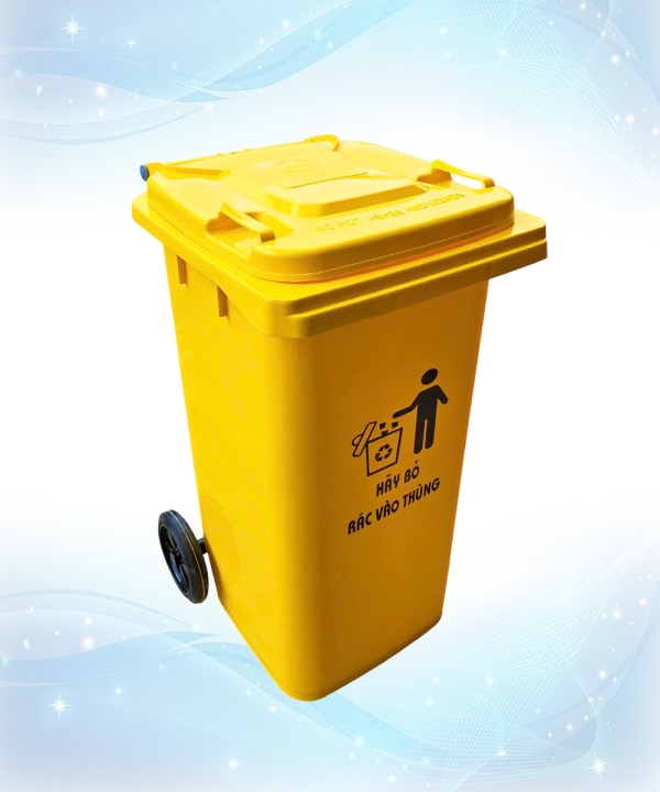 Kích thước: 540 x 450 x 920 ± 10mm Dung tích: 120 lít. Nguyên liệu: HDPE chính phẩm + Nhựa Nguyên sinh Màu sắc: Vàng, Xanh lá,Trắng, Đen, Dương, Đỏ, Xám, Cam